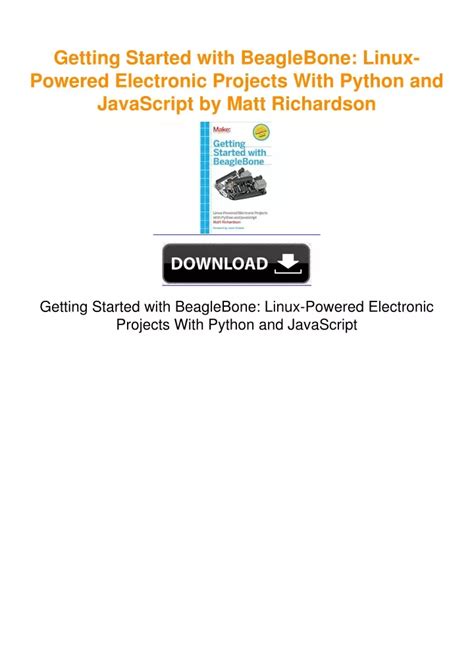 Read Getting Started with BeagleBone Linux-Powered Electronic Projects With Python and JavaScript PDF By Click Button. Getting Started with BeagleBone Linux-Powered Electronic Projects With Python and JavaScript it’s easy to recommend a new book category such as Novel, journal, comic, magazin, ect. You see it and you just know that the designer is also an author and understands the challenges involved with having a good book. You can easy klick for detailing book and you can read it online, even you can download it